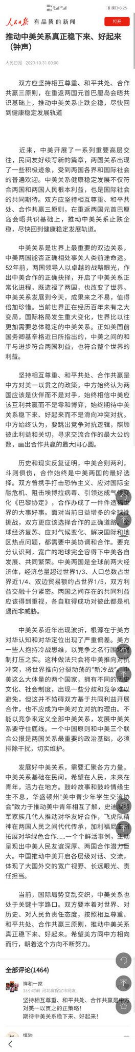 第三篇,是中国官方发布的对美友谊宣言…