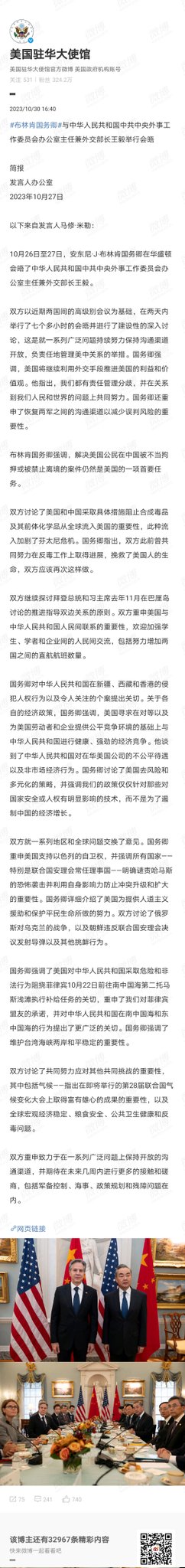 第一篇是美国国务卿关于中美会谈的内容简报,我总结过了,全文用相对温和的方式表达了对中国在多个领域的强烈不满。